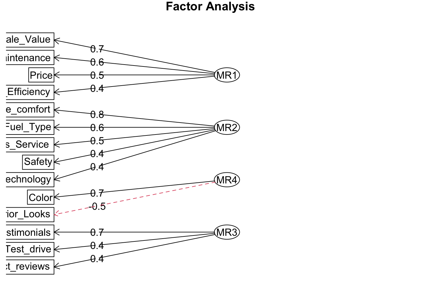因子数が 2 や 3 の場合には使われずに残る変数が見られるので、因子数は 4 にすることにします。
