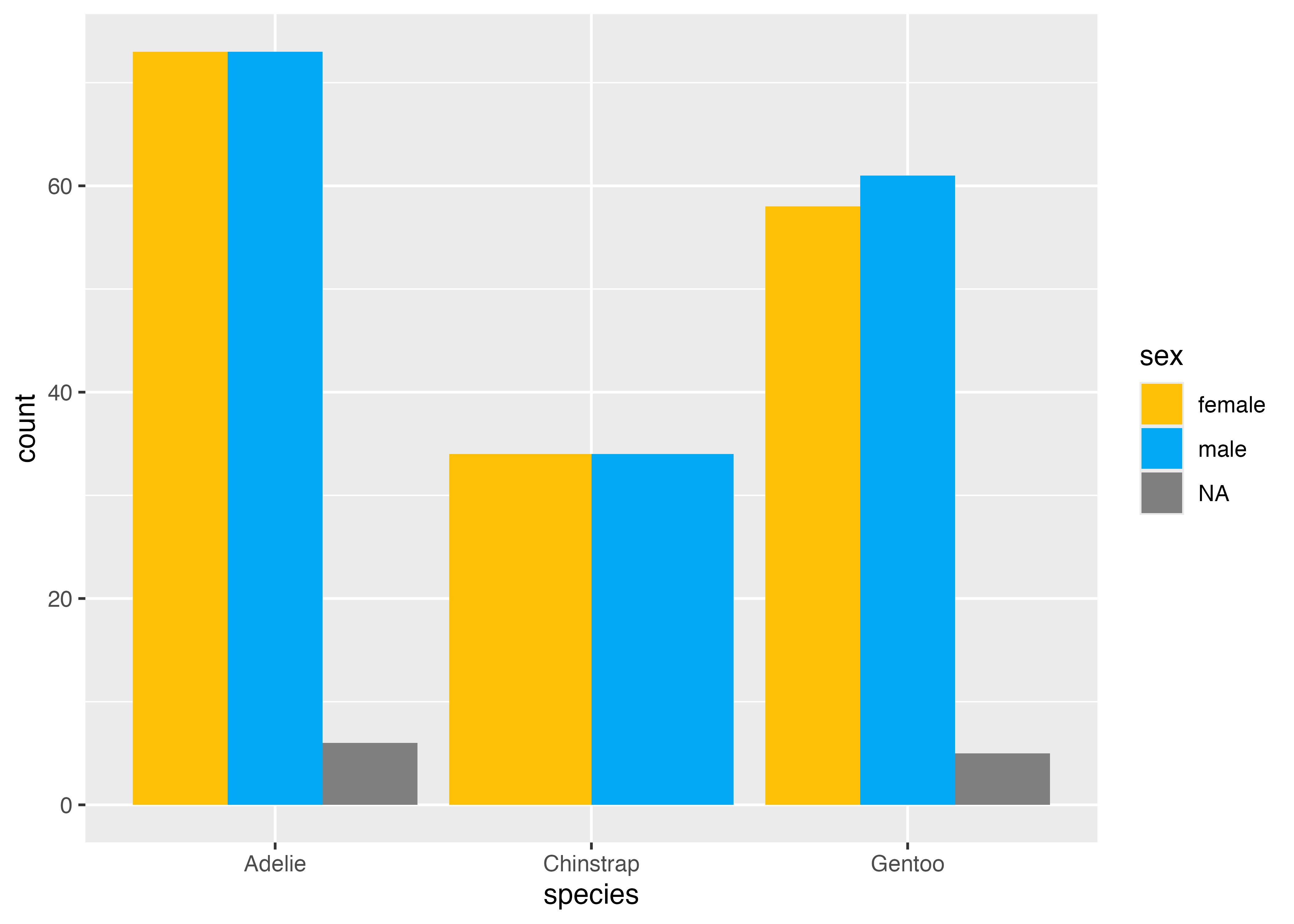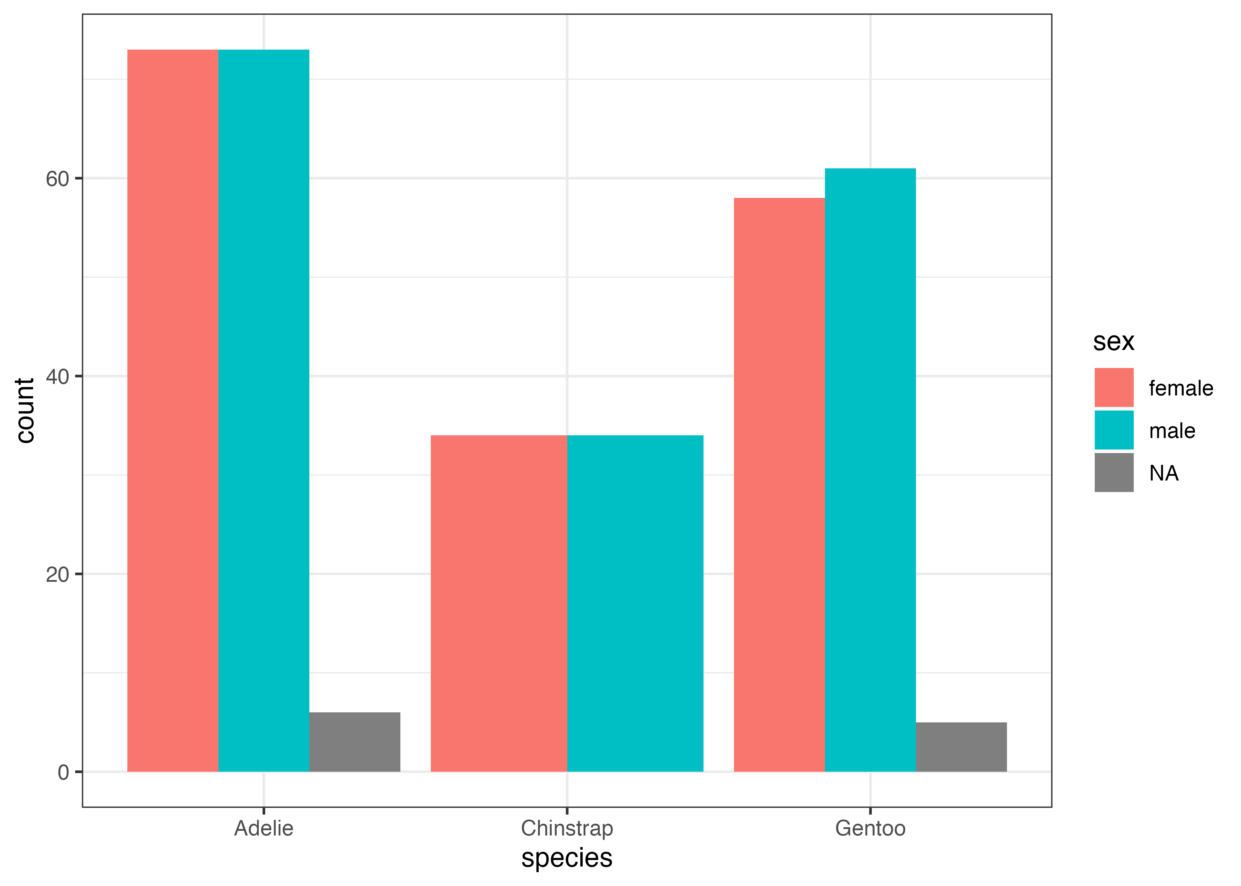 fig = ggplot(dat2, aes(x = species, fill = sex)) +