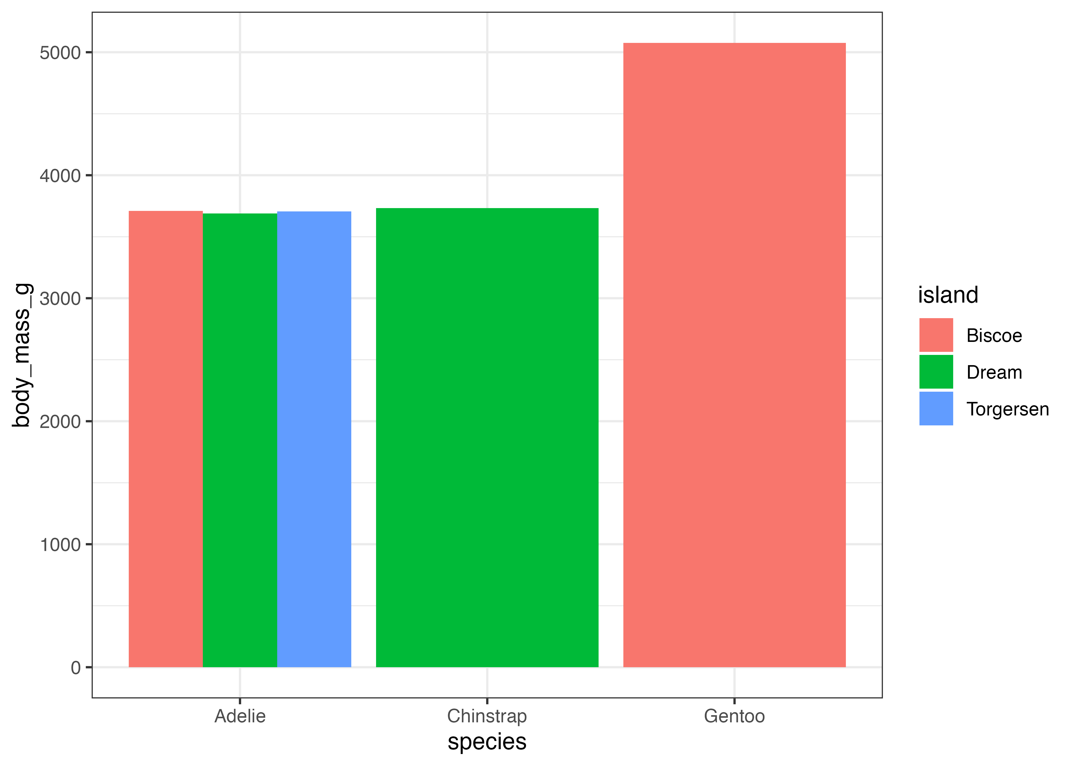 fig = ggplot(df, aes(x = species, y = body_mass_g, fill = island)) +