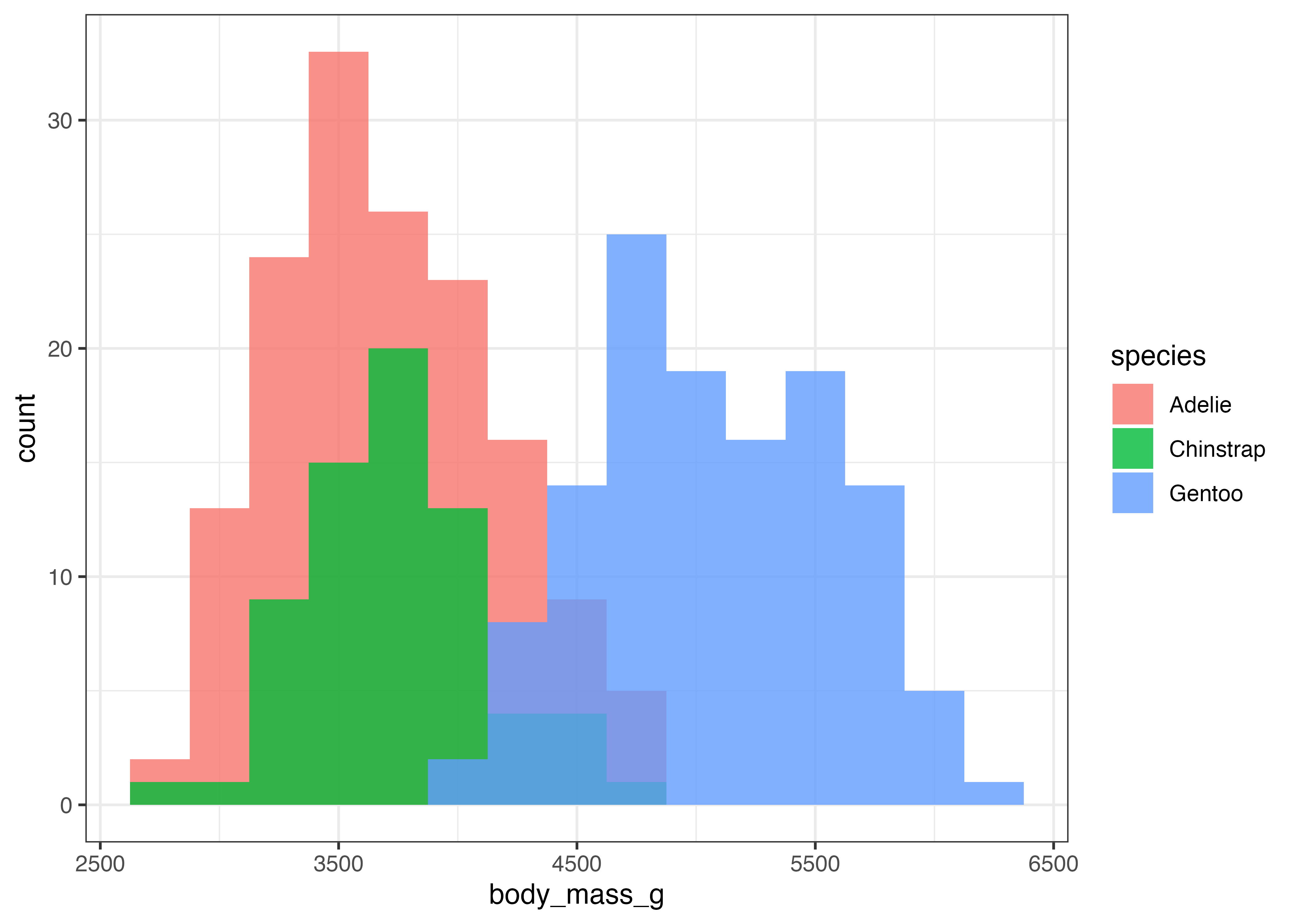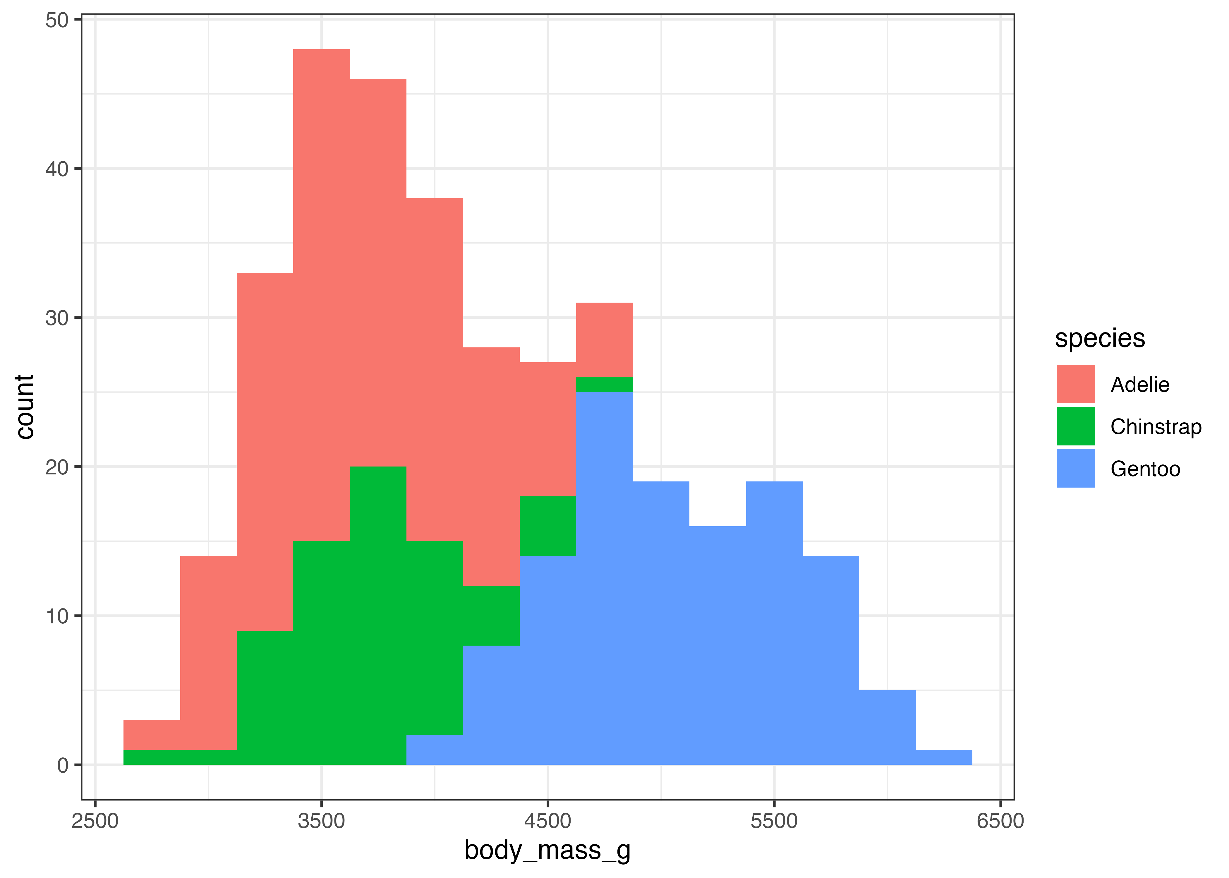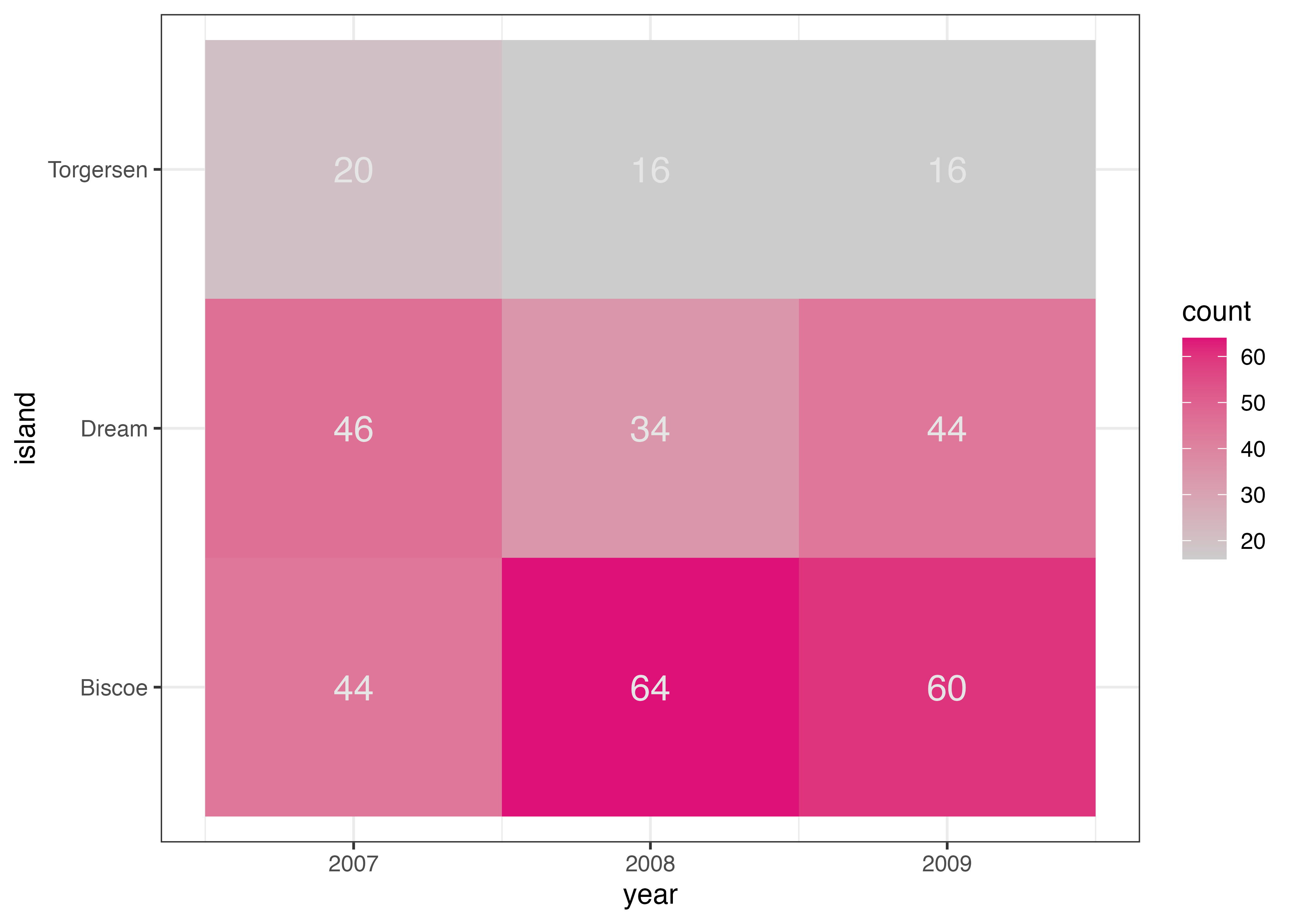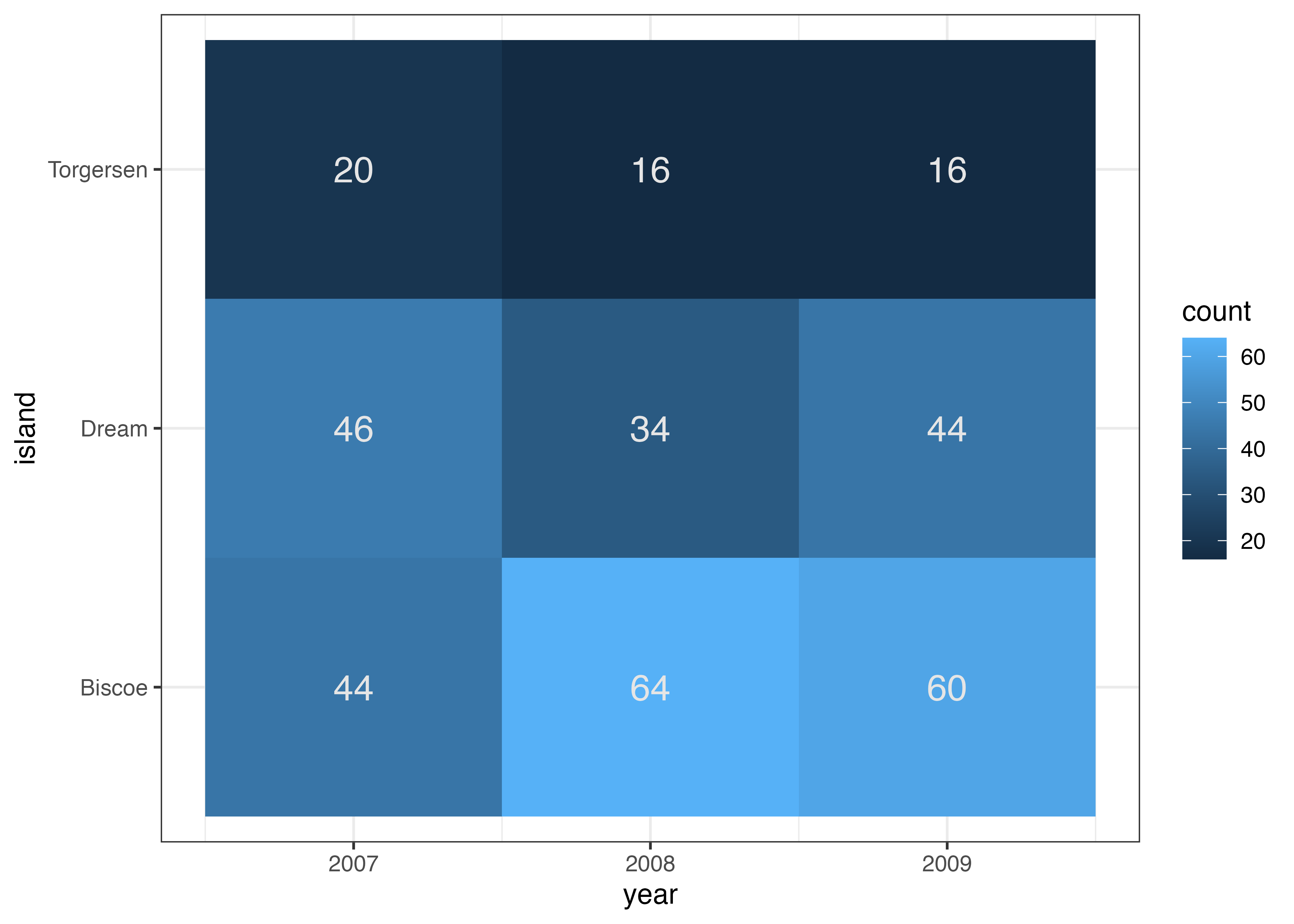 色を使って図に情報を追加しましょう。ここでは island(生息する島) ごとに color(色)をマッピングしてみます。