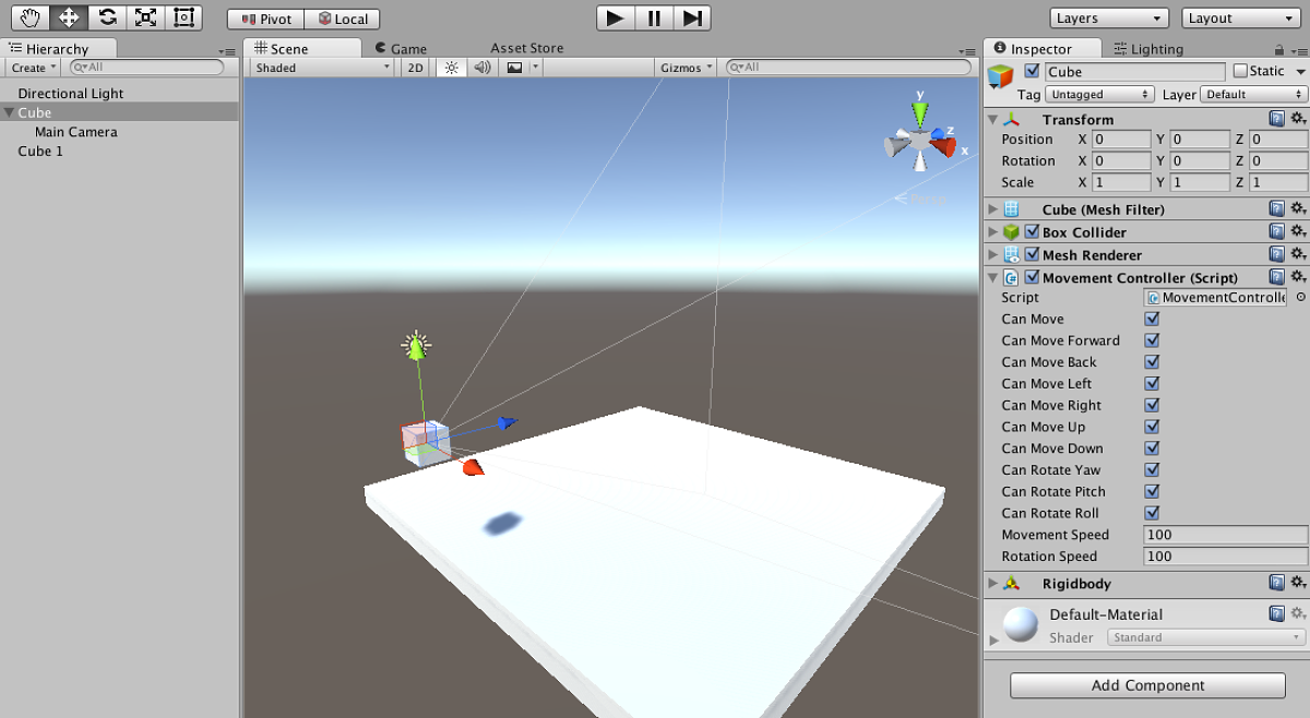 空間内に他の物体が無いと自己移動がわかりにくいので、適当に物体を配置してみると移動していることがわかりやすくなると思います(下図では Cube 1 というやつ)。