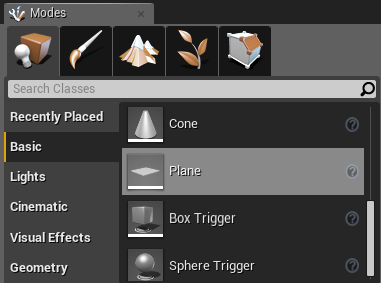 まず、鏡として用いるための Plane アクターをレベル内の適当な場所に配置します。
