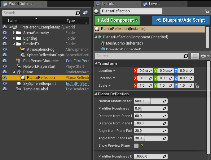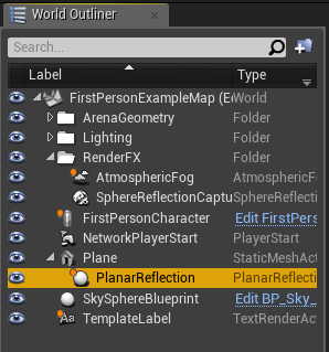 するとエディタ画面から Planar Reflection が見えなくなります。