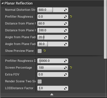 Planar Reflection のパラメータについては公式ドキュメントに記載があります。