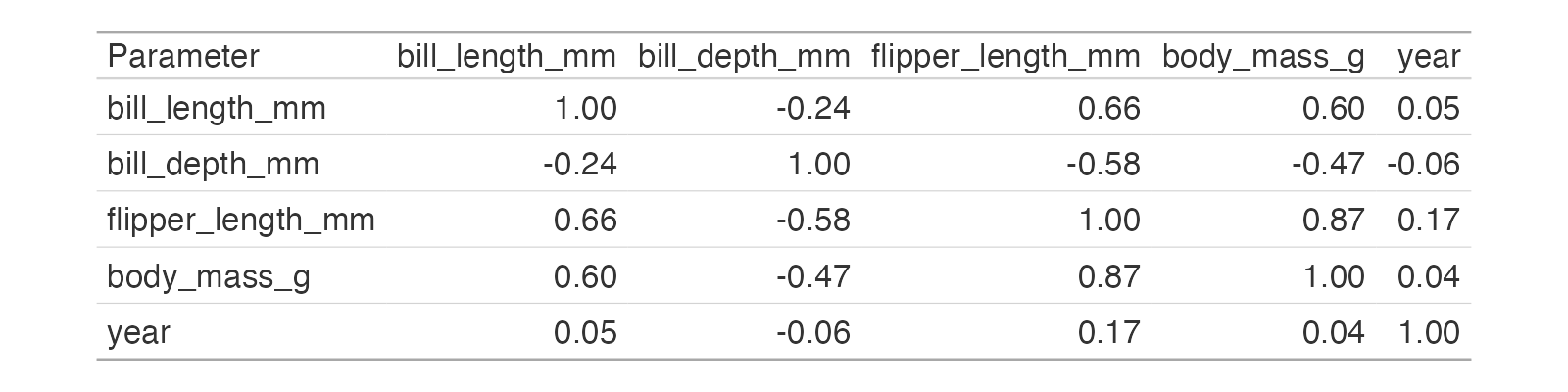## bill_length_mm bill_depth_mm flipper_length_mm body_mass_g