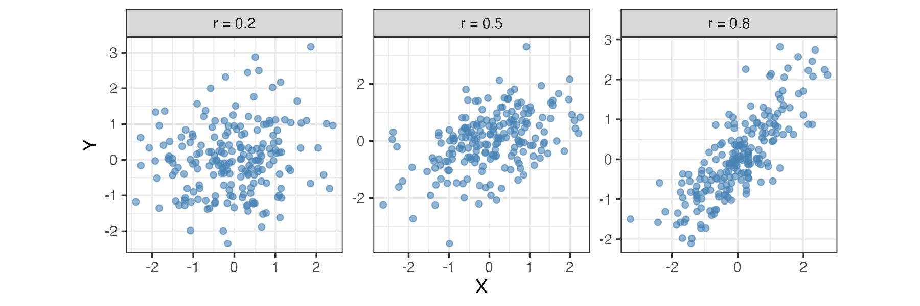 相関係数はその値(の絶対値)が大きいほど変数間の関連が強いことを意味します。