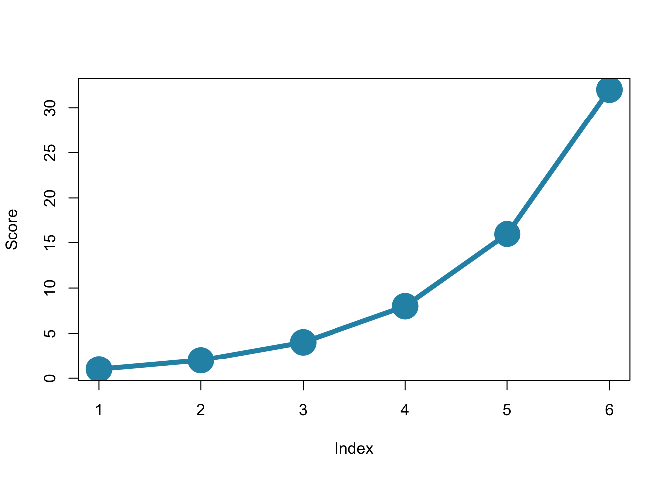 plot(x = c(1, 2, 4, 8, 16, 32),