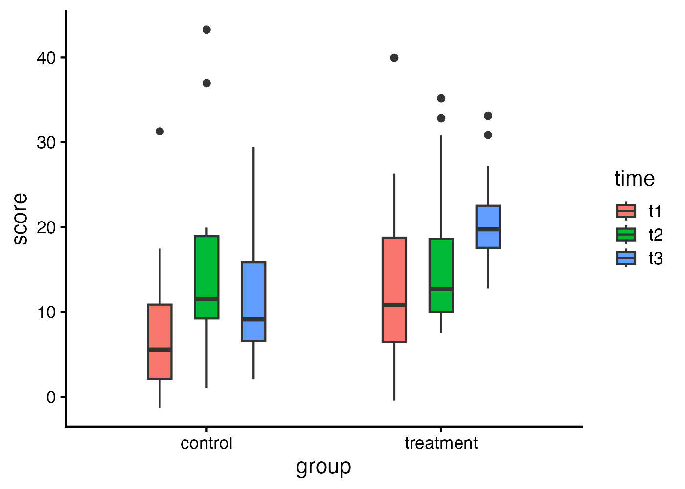 ifelse(group == "treatment" & time == "t3", 9, 0) +